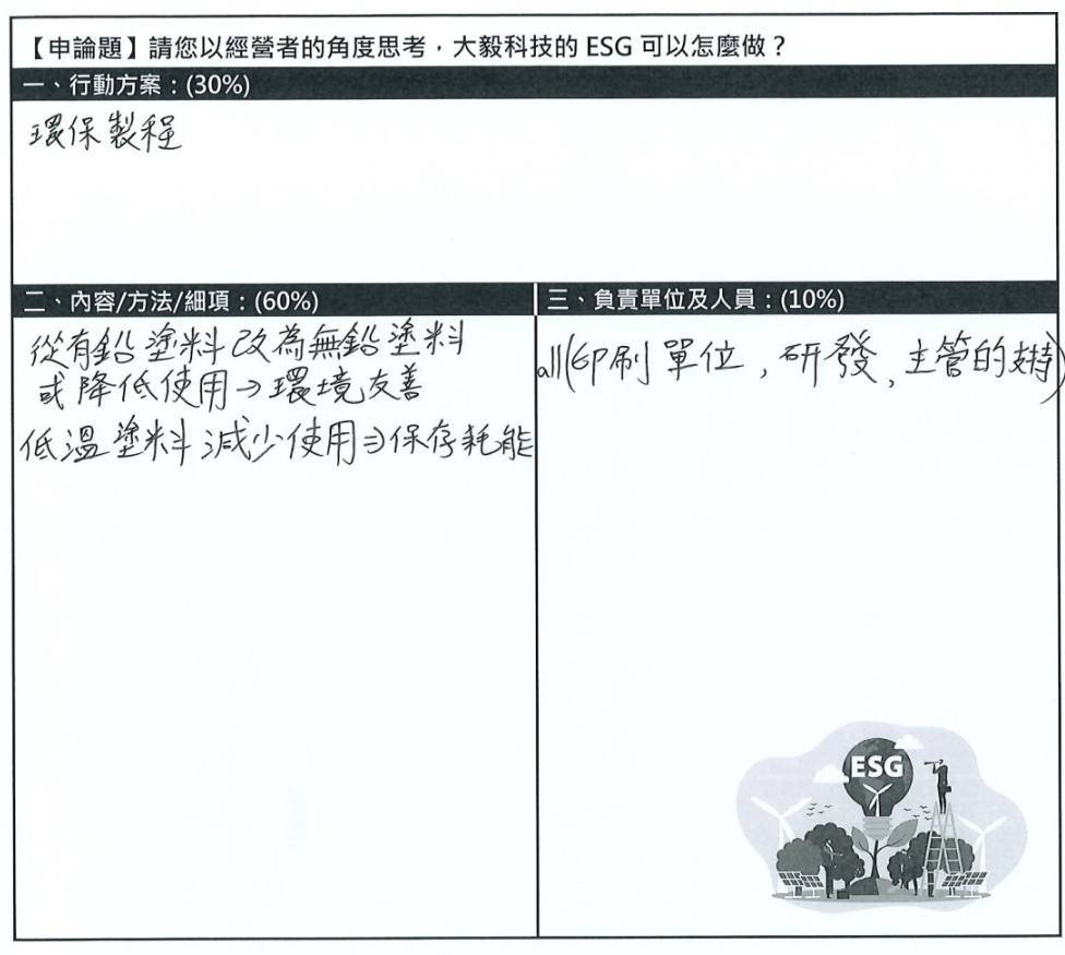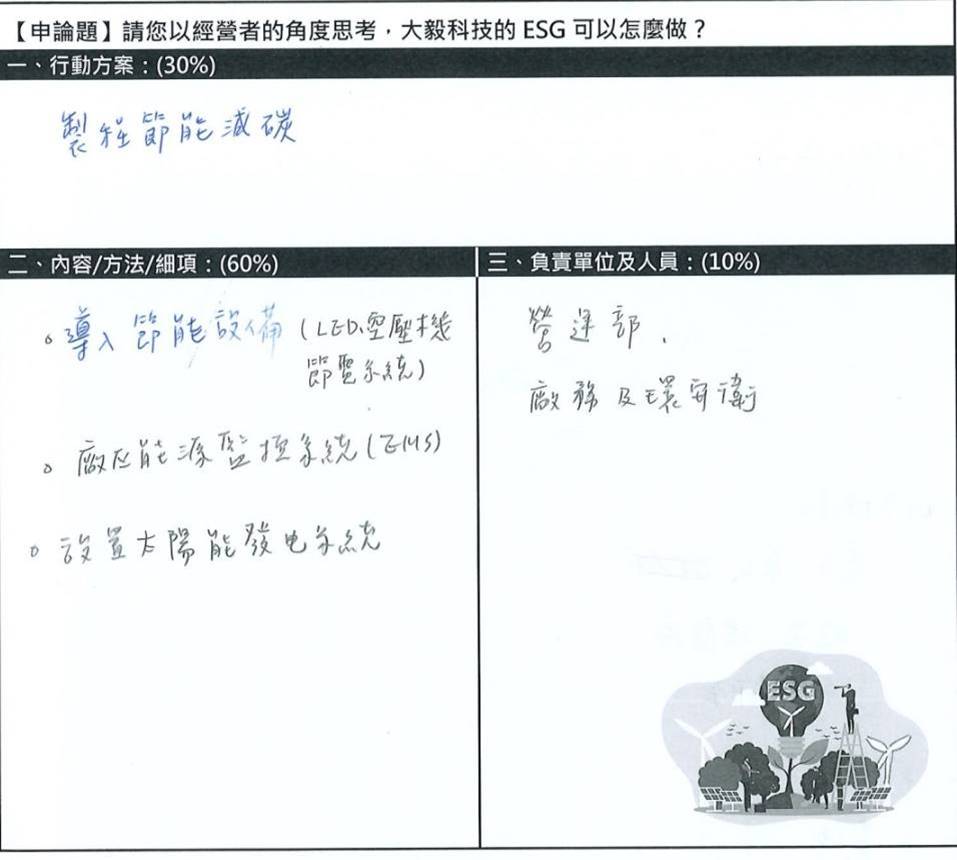 感謝每一位夥伴認真投入,也期待在你們的努力下,將這些好點子一一落實,讓大毅科技的永續發展不只是一句口號,而是讓永續,變成我們生活的一部分。